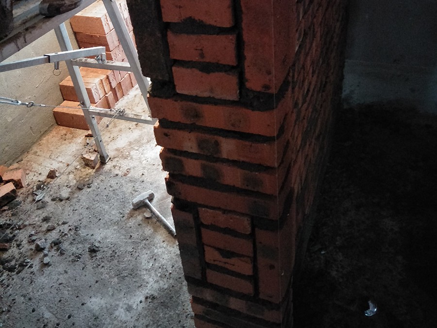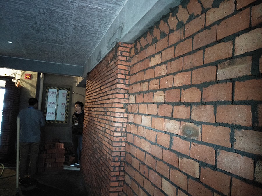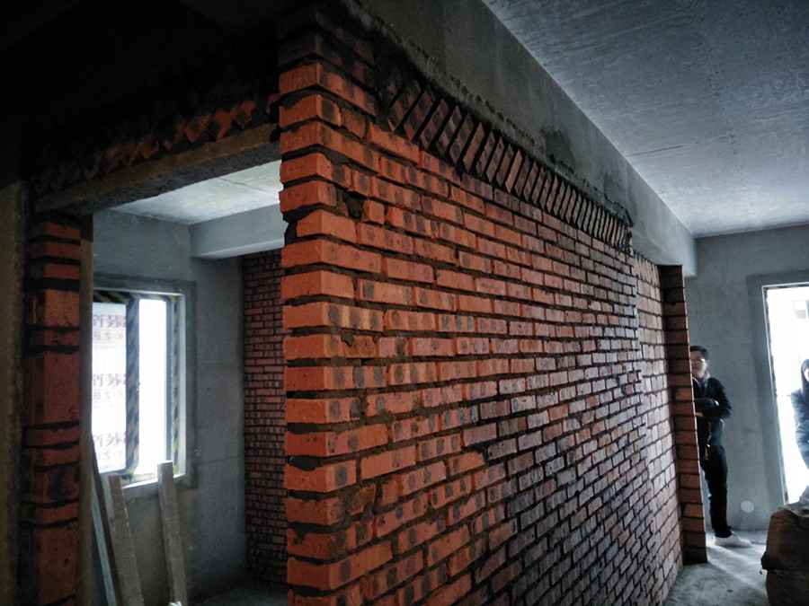 舊墻體每間隔約50cm植筋后砌新墻體
