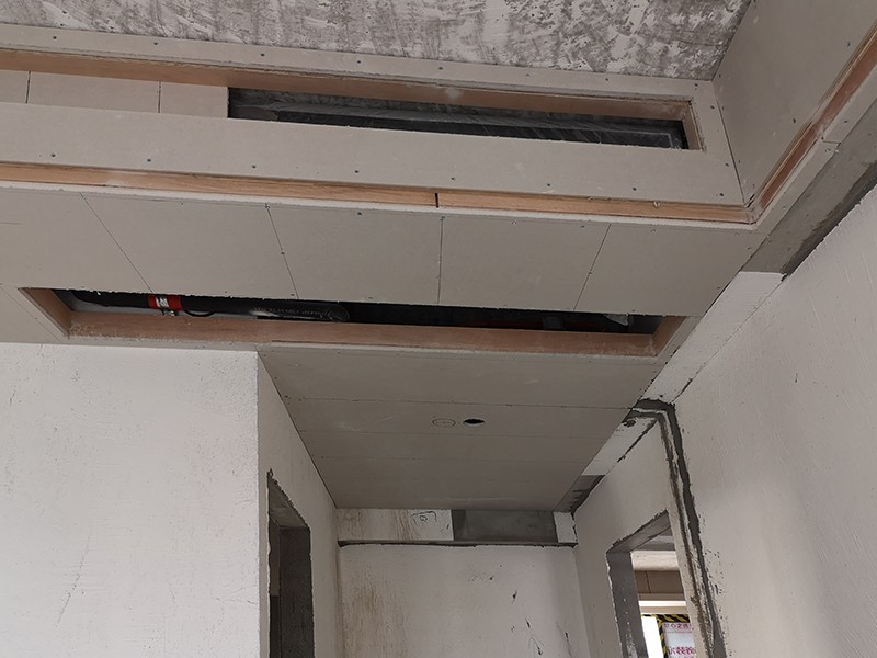 空調(diào)風口整板封板工藝:防止整板對抗變形而引起板縫間乳膠漆面開裂振動與熱脹冷縮,導致面層板的變形而產(chǎn)生裂縫。