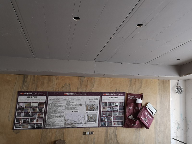 燈槽加鋪底板防塵工藝:吊頂?shù)臒舨鄣撞恳追e灰塵,主要是墻頂膩子打磨時的灰塵;加鋪底板的在保潔時便于將燈槽內(nèi)積灰完全清理。